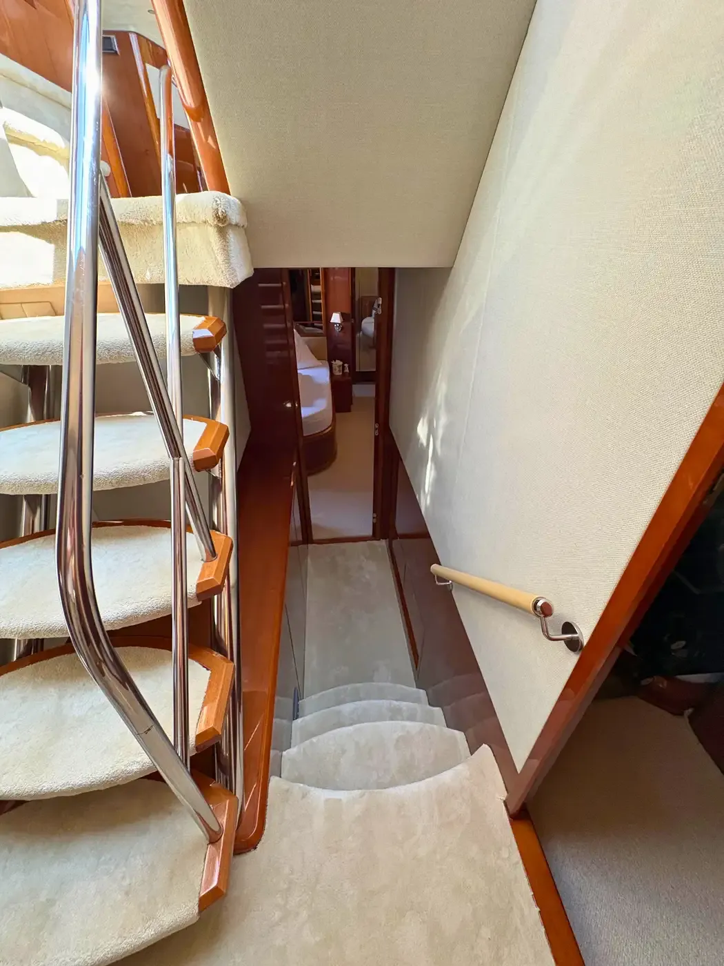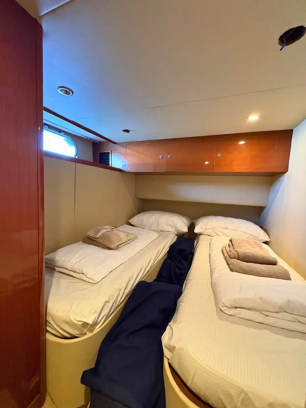 Im lichtdurchfluteten Salon erwartet Sie ein einladendes Ambiente mit edlen Materialien und Panoramablick aufs Meer. Die Princess 21M bietet Platz für bis zu 8 Gäste in vier stilvoll eingerichteten Kabinen, darunter eine großzügige Eignerkabine und eine VIP-Kabine, jeweils mit eigenem Bad. Zwei weitere Gästekabinen – eine mit Einzelbetten, eine mit Etagenbetten – teilen sich ein weiteres Bad und sorgen für Privatsphäre und Komfort für alle an Bord.