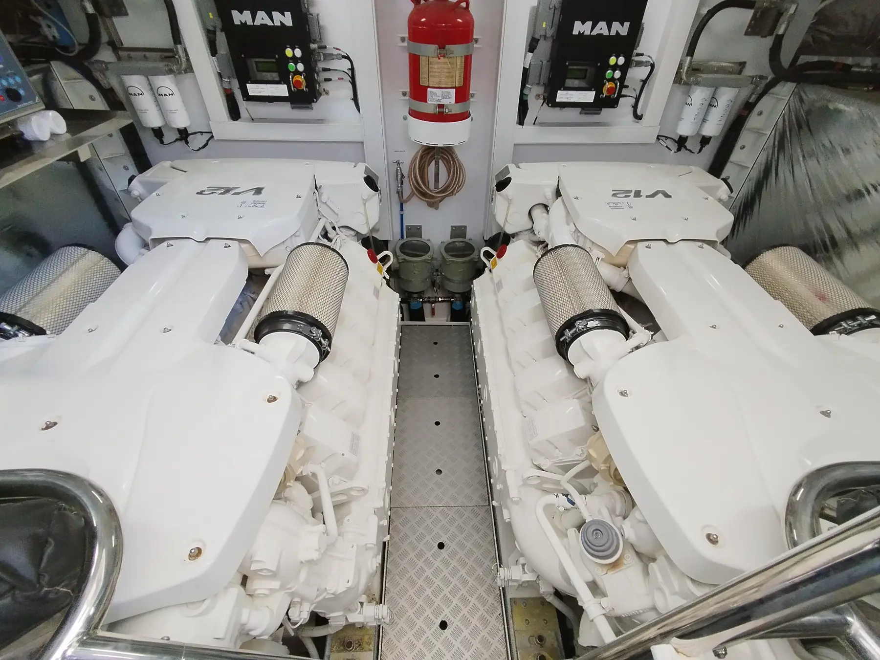 Angetrieben von zwei kraftvollen MAN V12-Motoren mit jeweils 1.400 PS erreicht die Princess S66 beeindruckende 38 Knoten Höchstgeschwindigkeit. Mit einer Länge von 20,14 m, einer Breite von 5,06 m und einem durchdachten Raumangebot überzeugt diese Yacht in allen Bereichen – ideal für anspruchsvolle Genießer und Abenteurer.