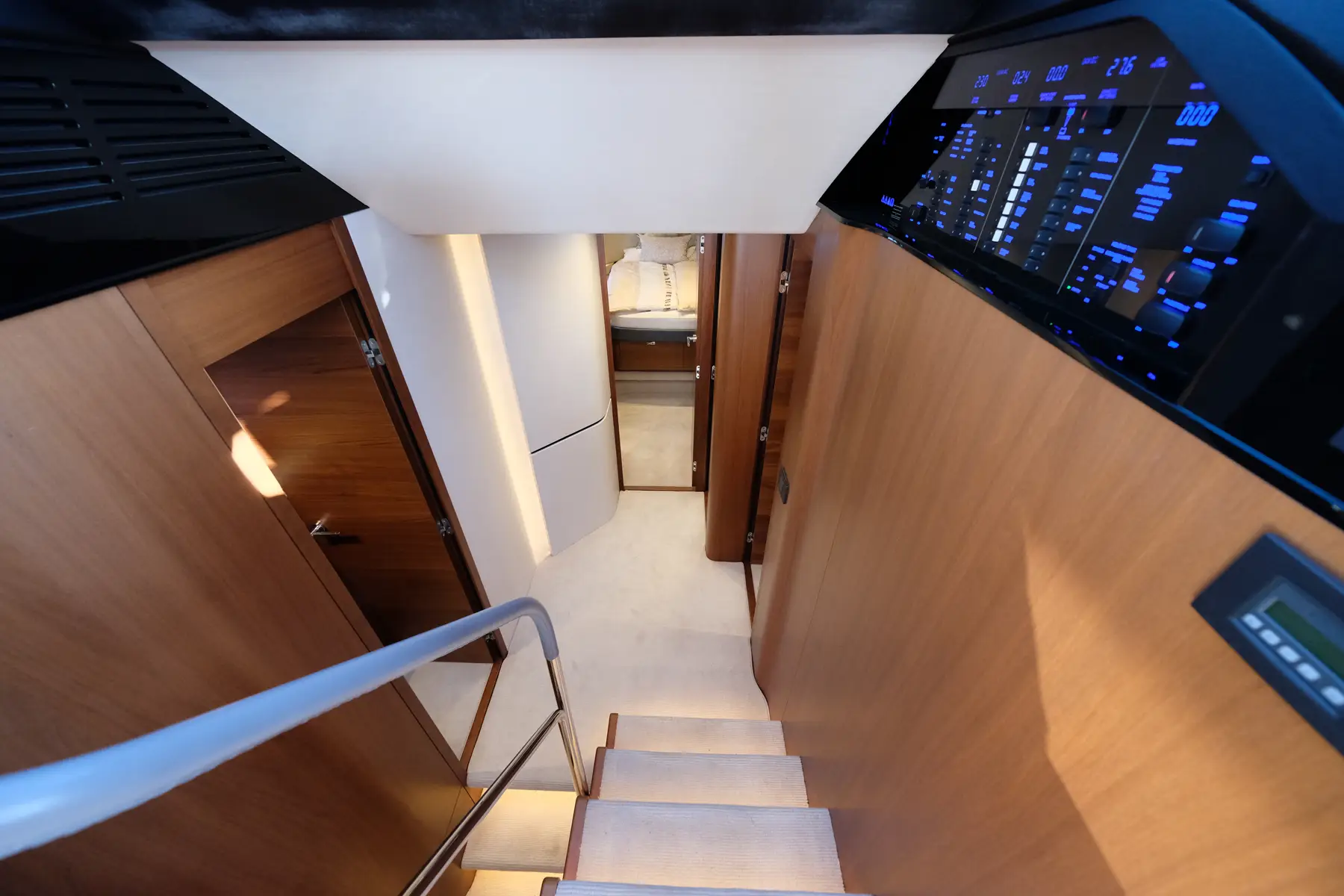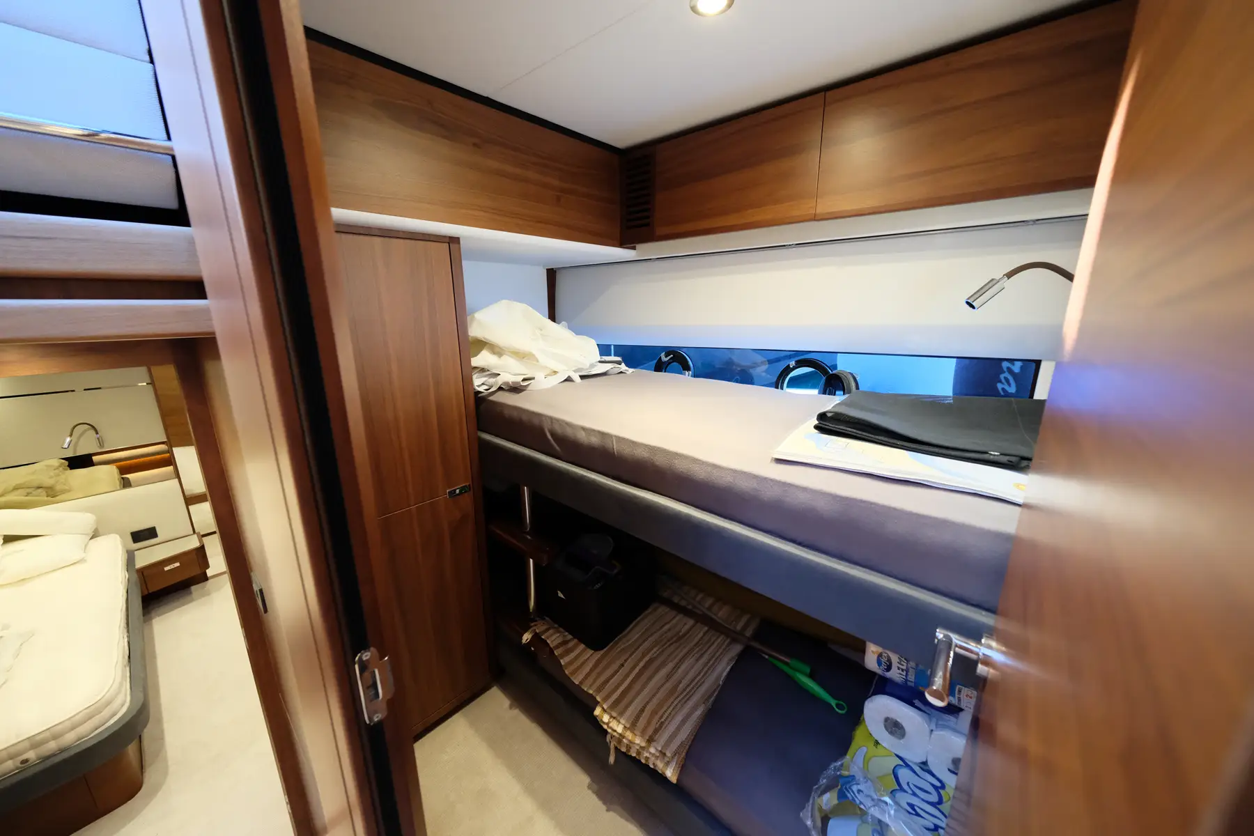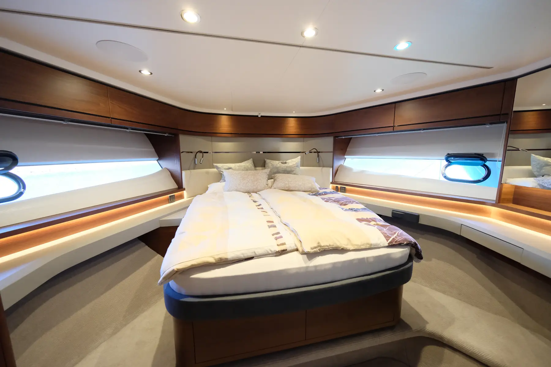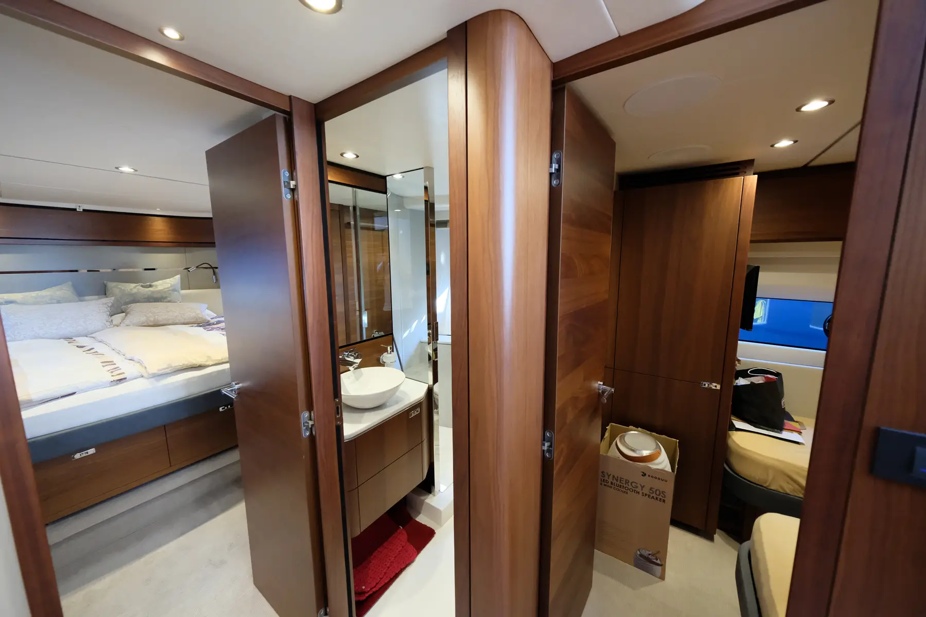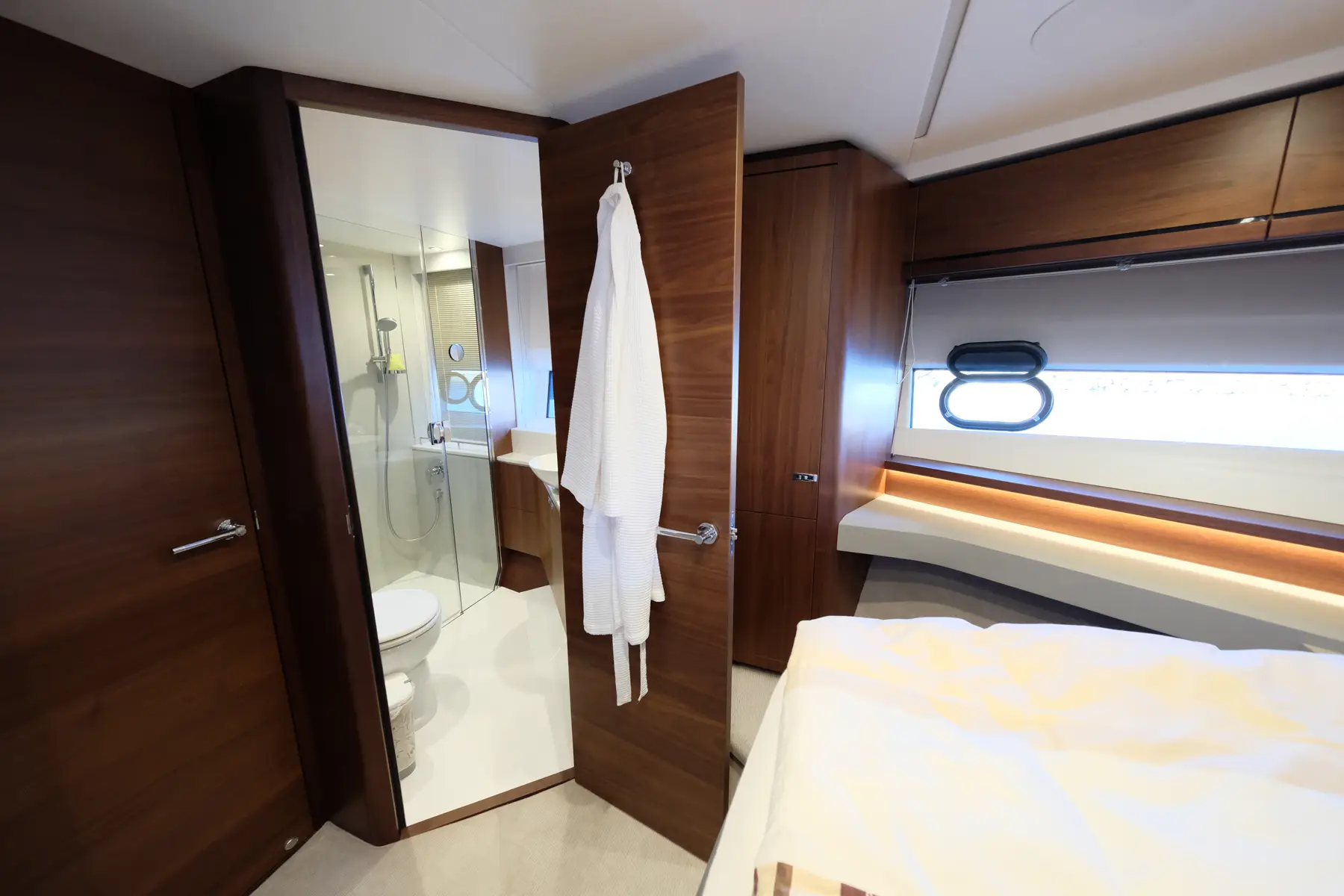 Zu den Highlights gehören die drei modernen Bäder, ein großzügiger Kraftstofftank mit 4.100 Litern Kapazität und ein Wassertank mit 802 Litern, die für lange, sorgenfreie Fahrten ausgelegt sind. Egal, ob Sie eine schnelle Spritztour unternehmen oder entspannt durch die schönsten Buchten cruisen möchten – diese Princess S66 wird allen Erwartungen gerecht.