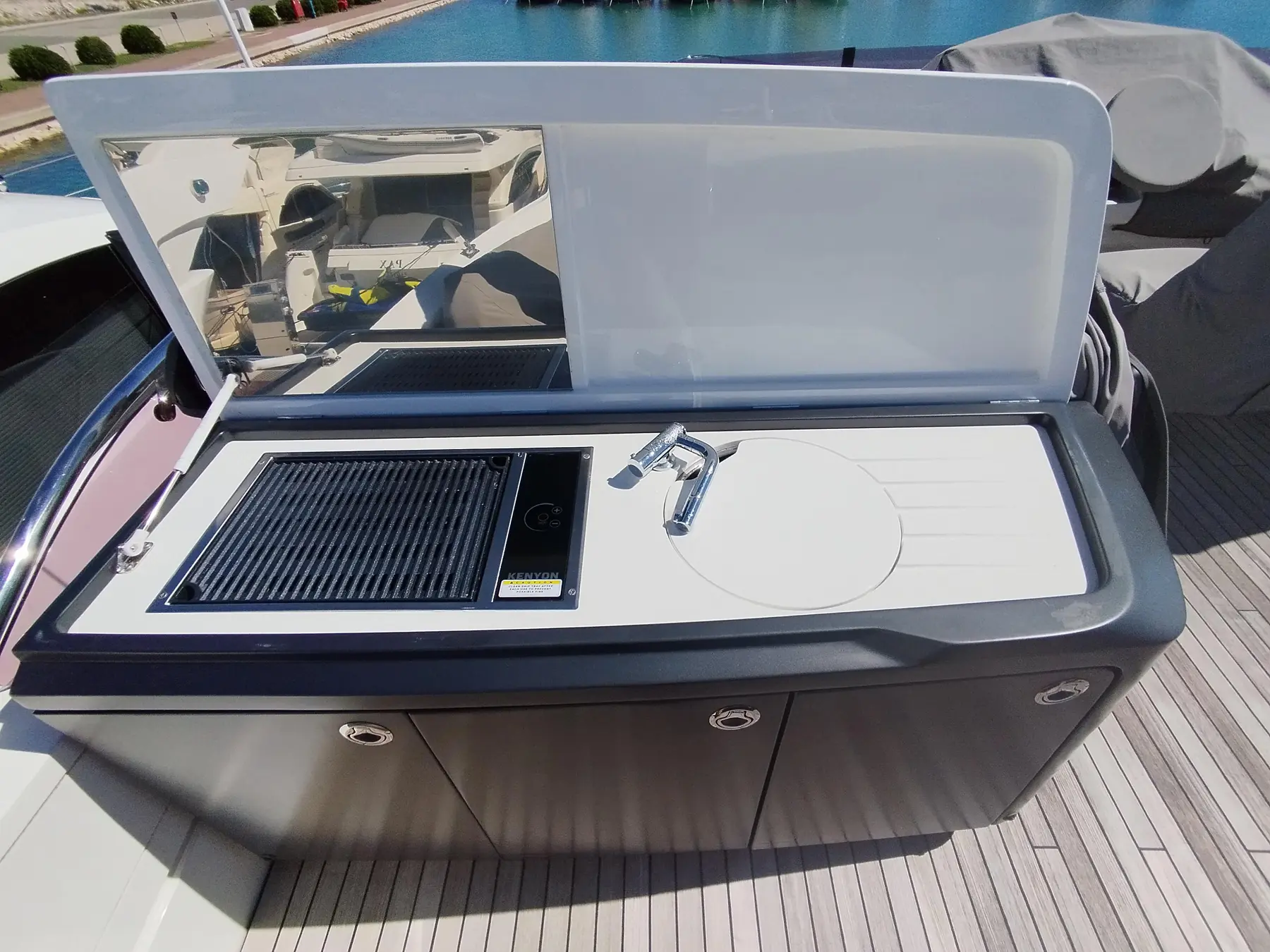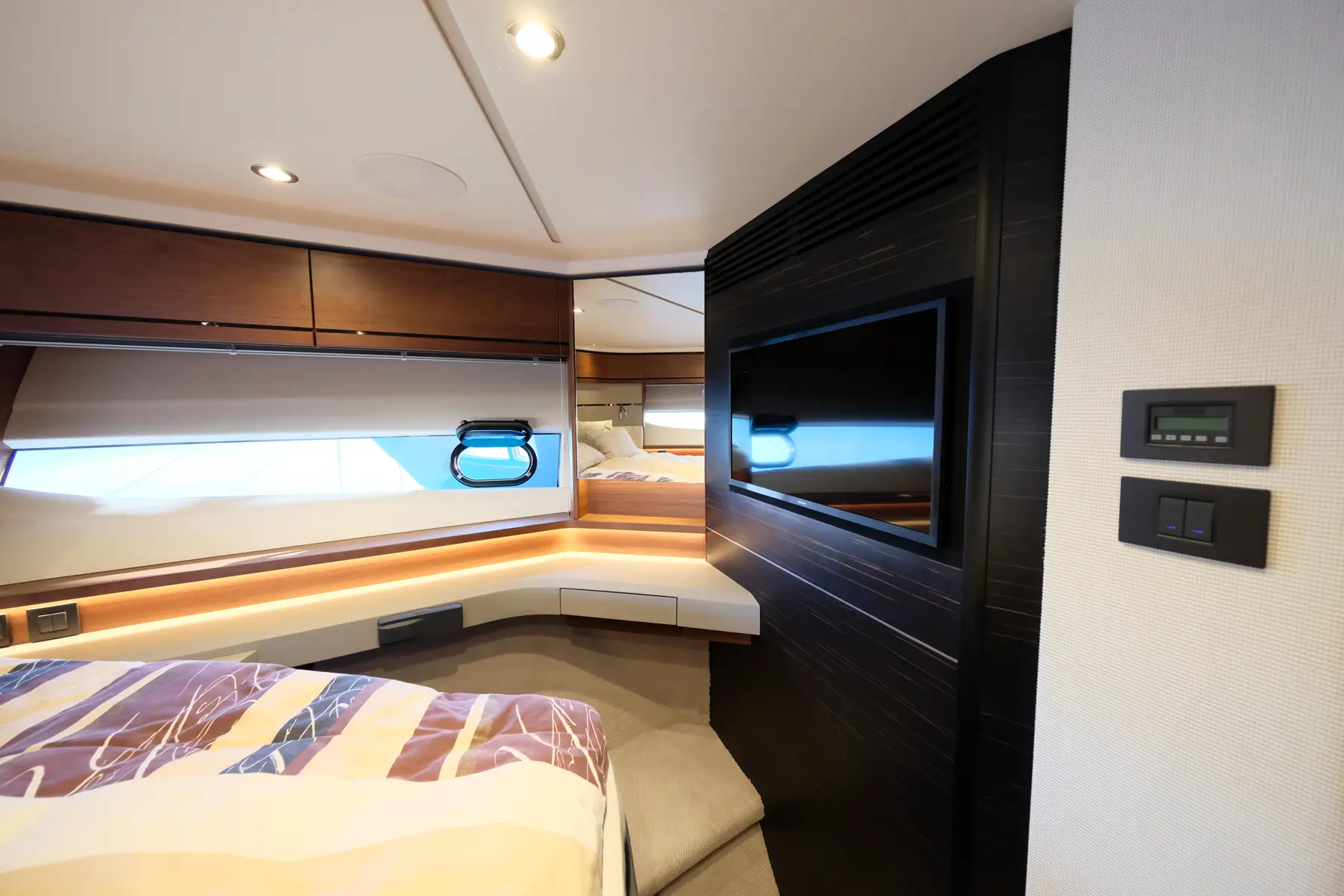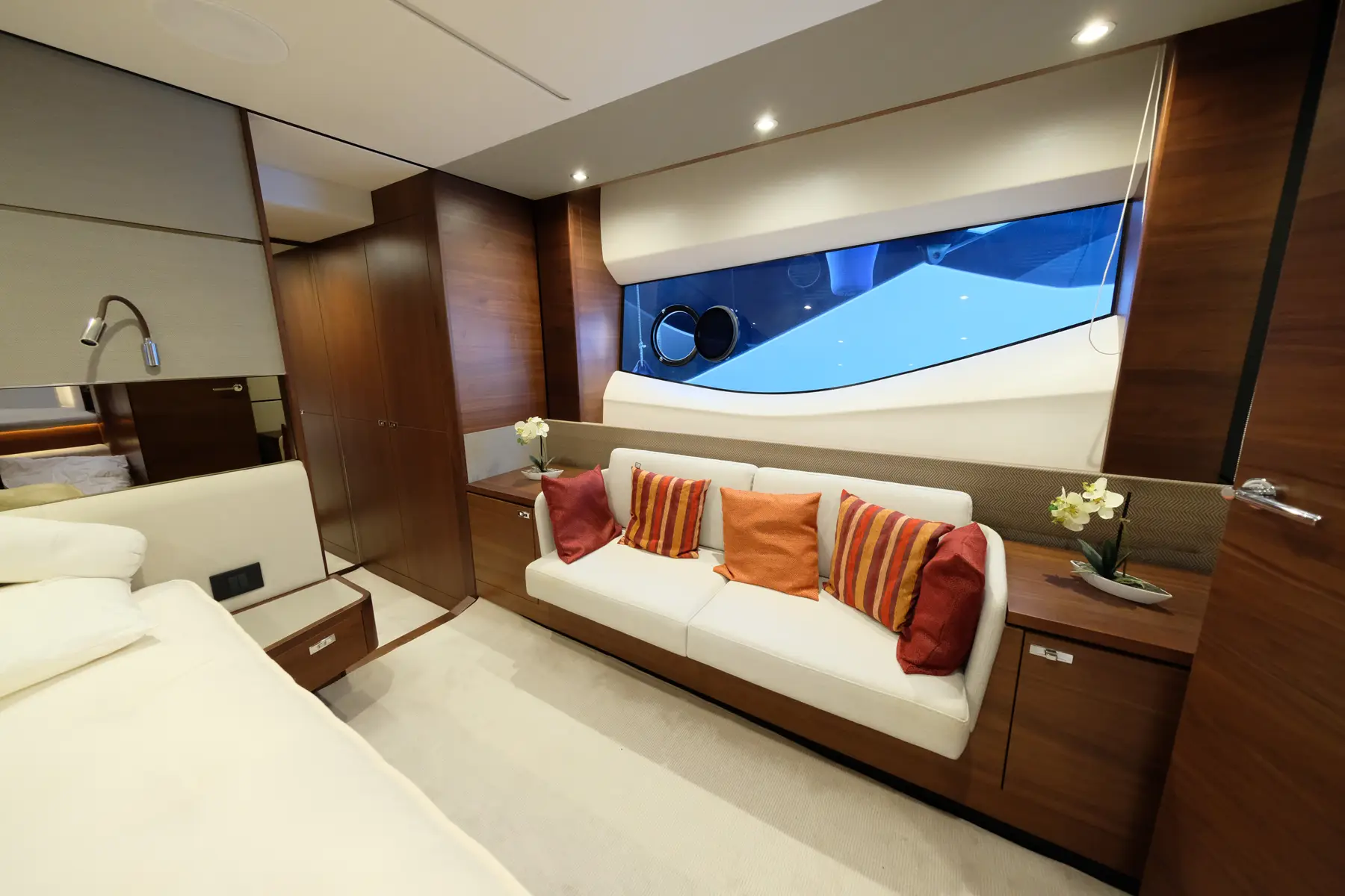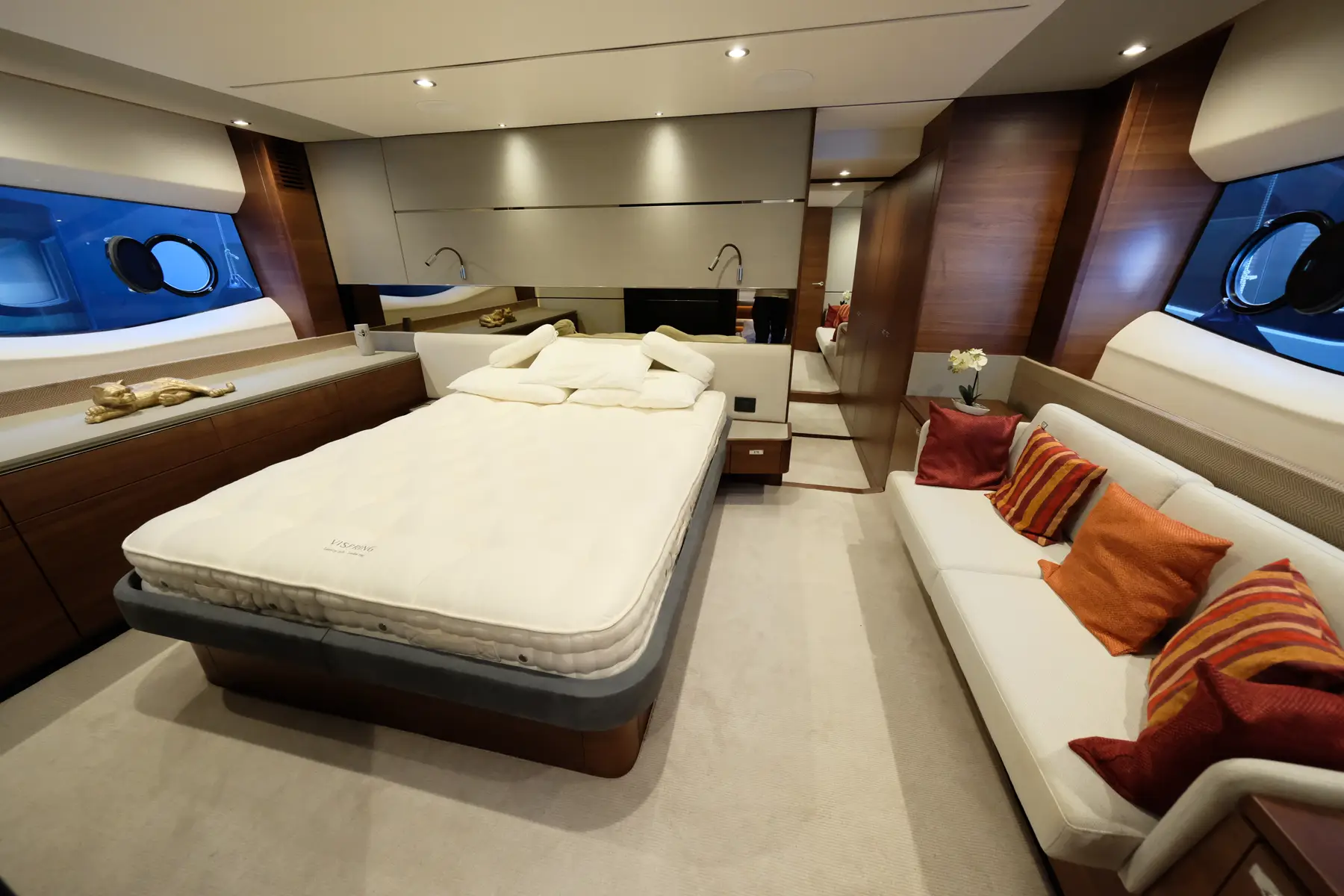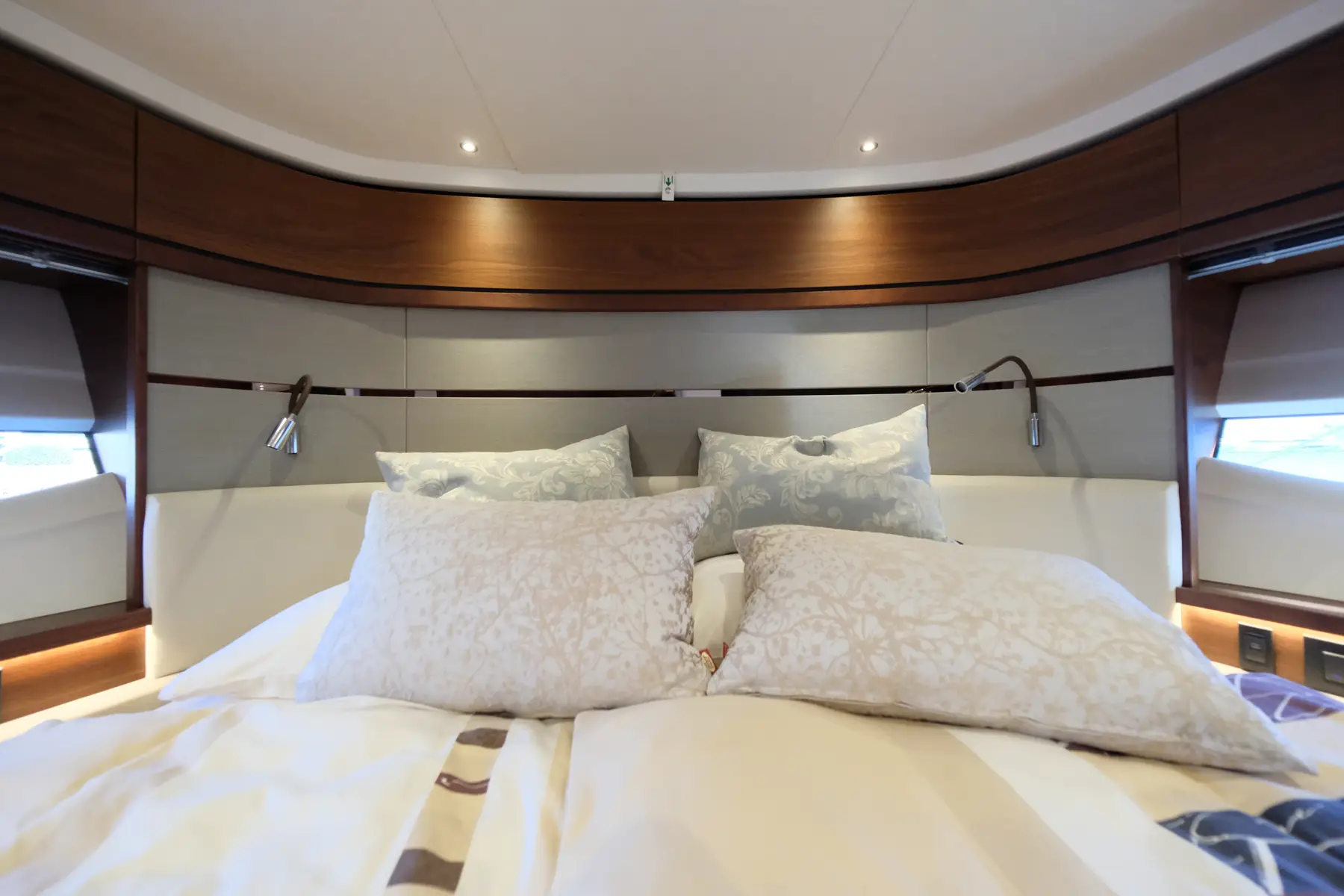 Zu den Highlights gehören die drei modernen Bäder, ein großzügiger Kraftstofftank mit 4.100 Litern Kapazität und ein Wassertank mit 802 Litern, die für lange, sorgenfreie Fahrten ausgelegt sind. Egal, ob Sie eine schnelle Spritztour unternehmen oder entspannt durch die schönsten Buchten cruisen möchten – diese Princess S66 wird allen Erwartungen gerecht.