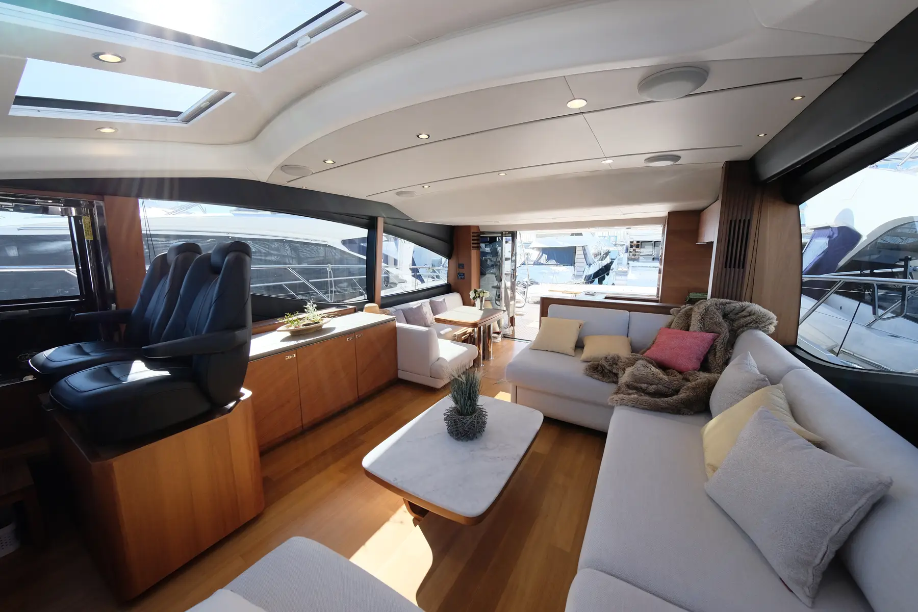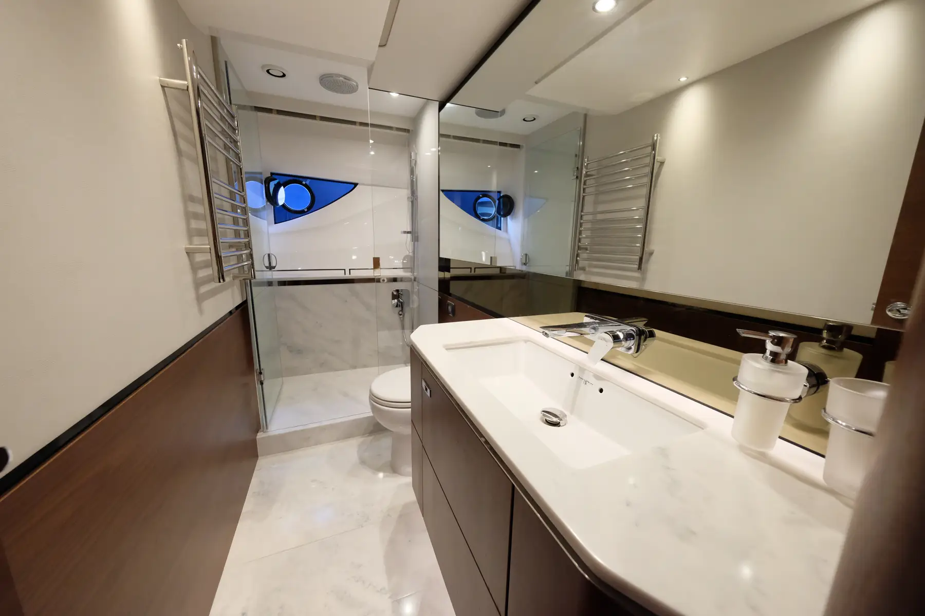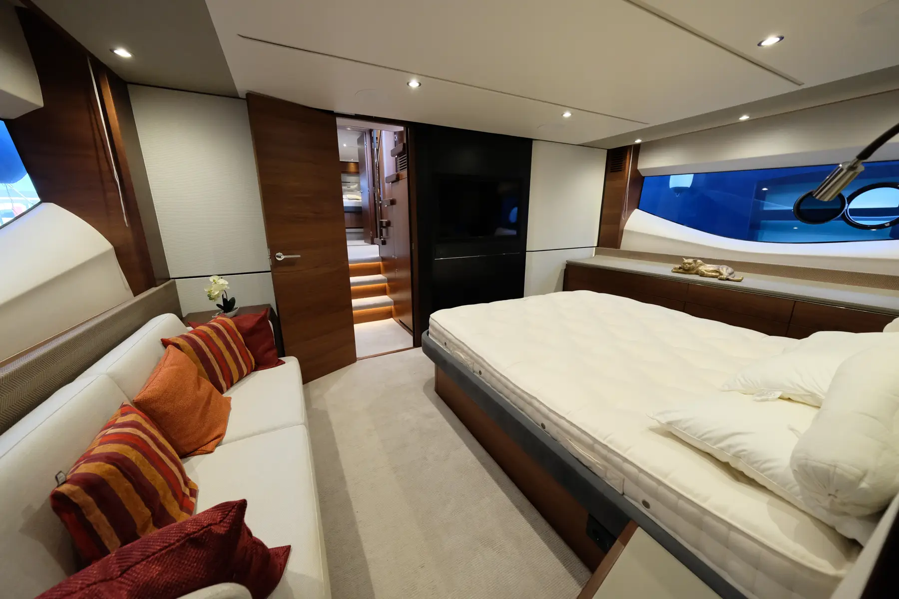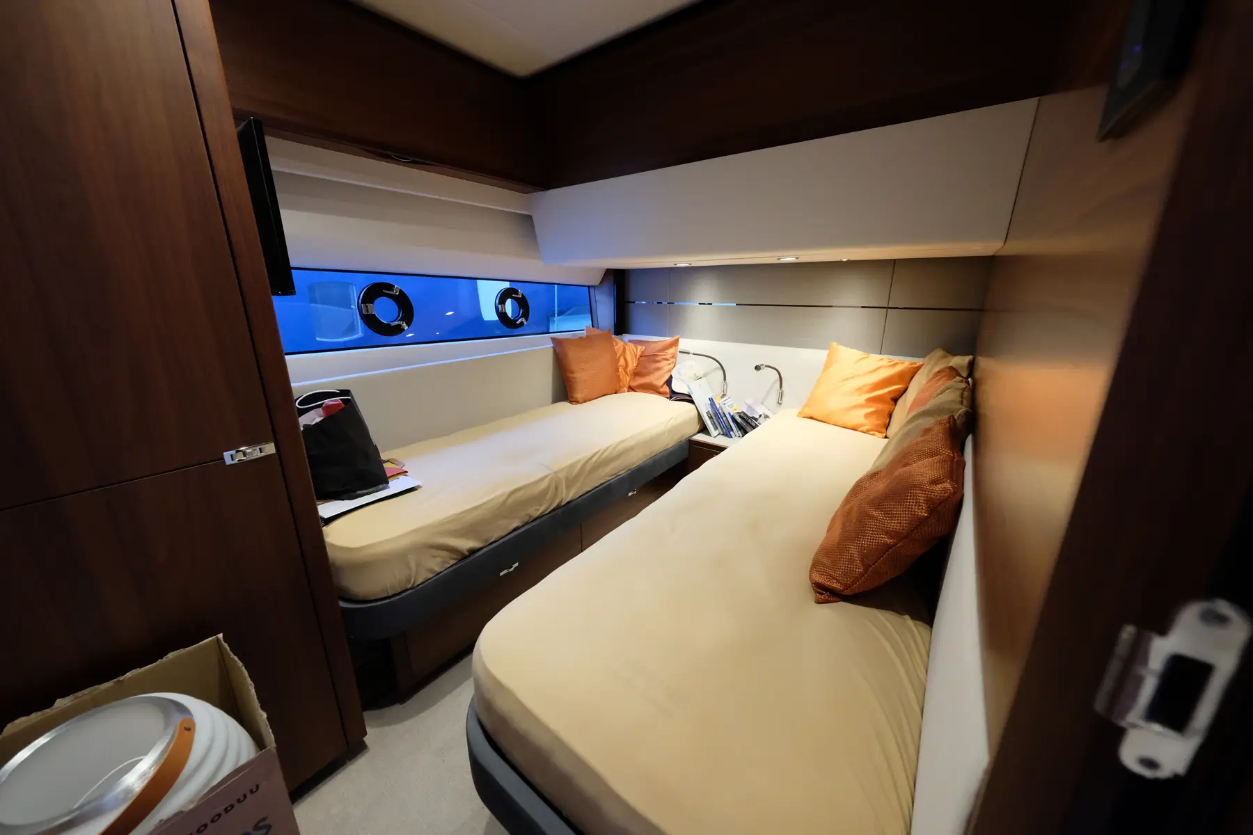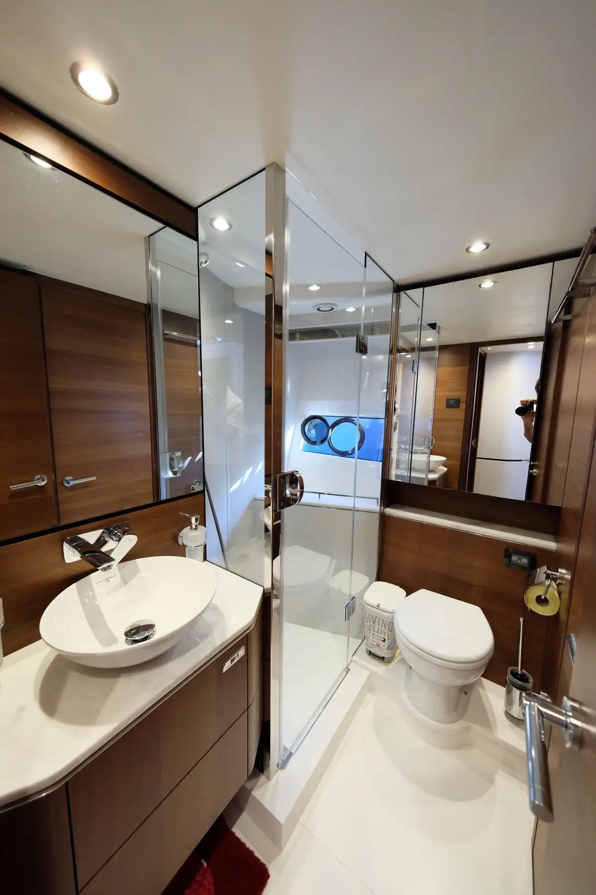 Zu den Highlights gehören die drei modernen Bäder, ein großzügiger Kraftstofftank mit 4.100 Litern Kapazität und ein Wassertank mit 802 Litern, die für lange, sorgenfreie Fahrten ausgelegt sind. Egal, ob Sie eine schnelle Spritztour unternehmen oder entspannt durch die schönsten Buchten cruisen möchten – diese Princess S66 wird allen Erwartungen gerecht.