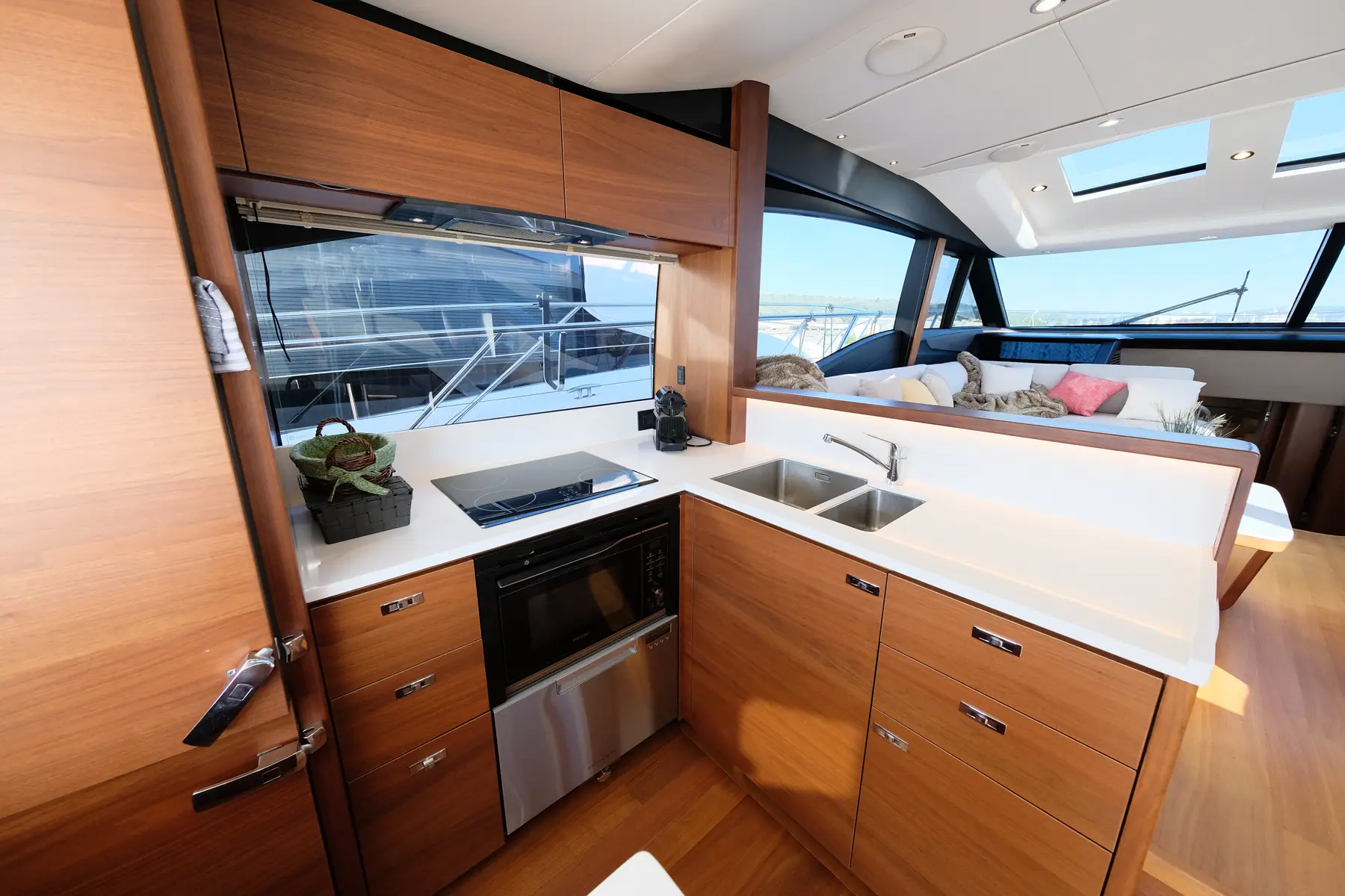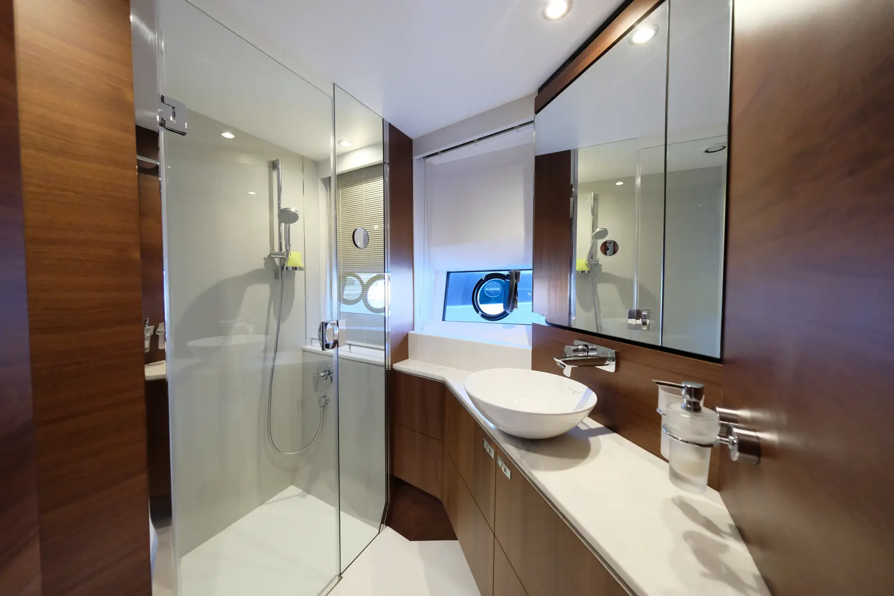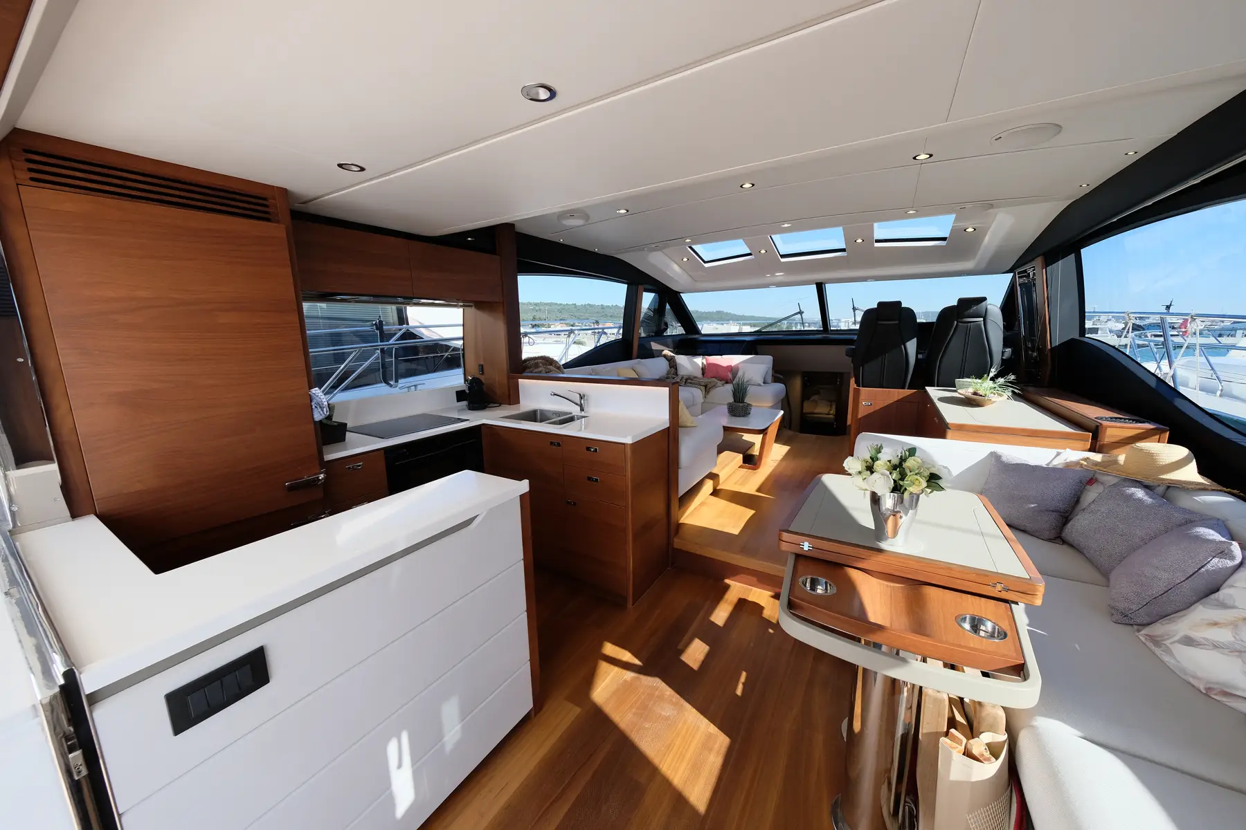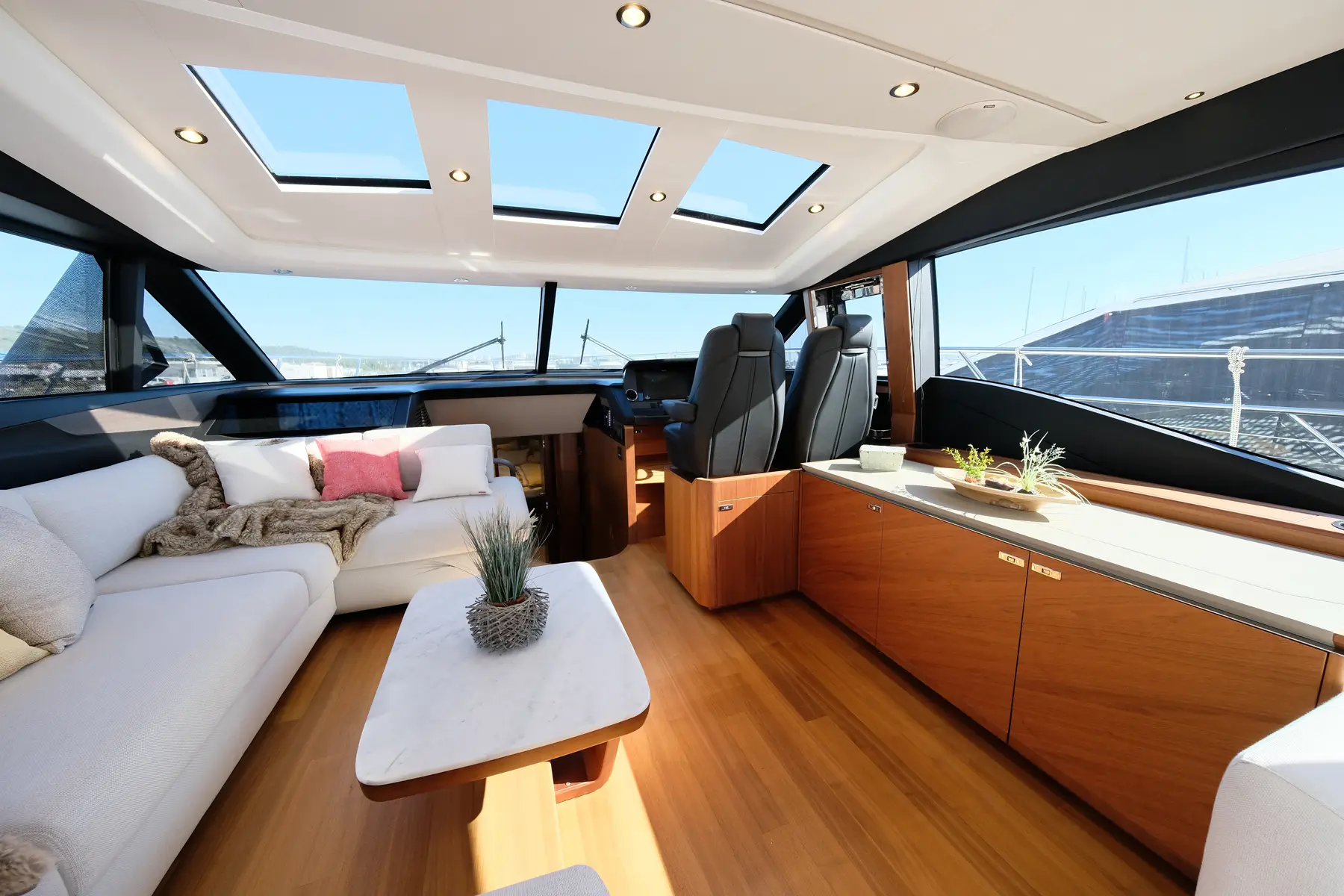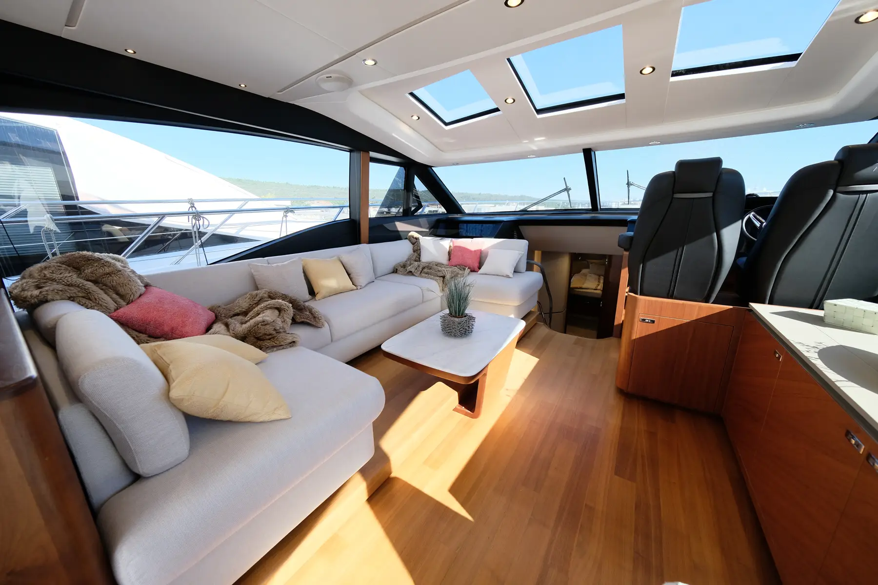 Zu den Highlights gehören die drei modernen Bäder, ein großzügiger Kraftstofftank mit 4.100 Litern Kapazität und ein Wassertank mit 802 Litern, die für lange, sorgenfreie Fahrten ausgelegt sind. Egal, ob Sie eine schnelle Spritztour unternehmen oder entspannt durch die schönsten Buchten cruisen möchten – diese Princess S66 wird allen Erwartungen gerecht.