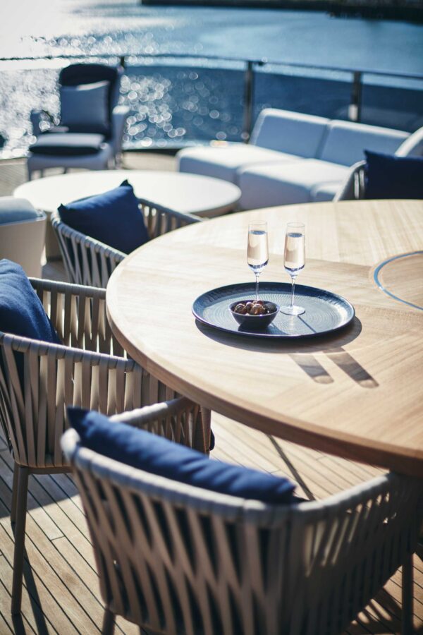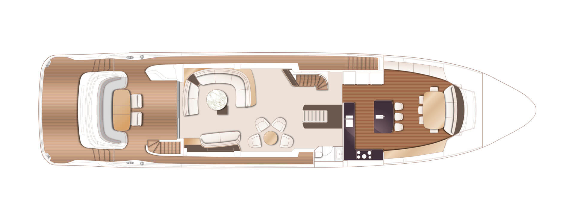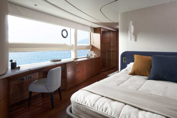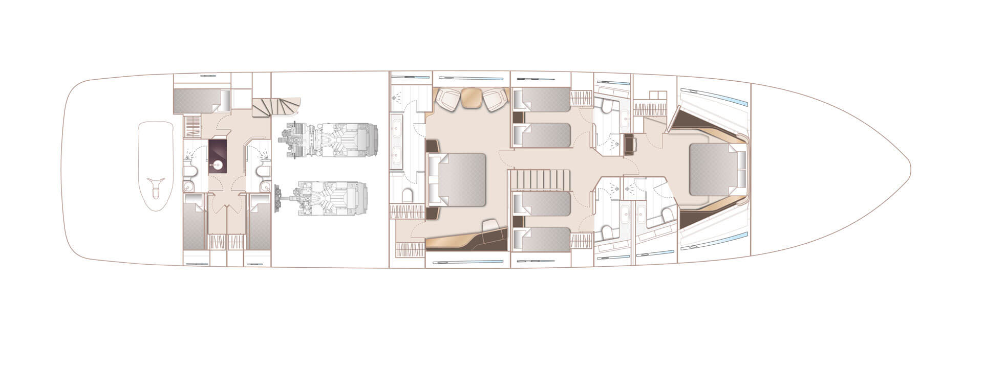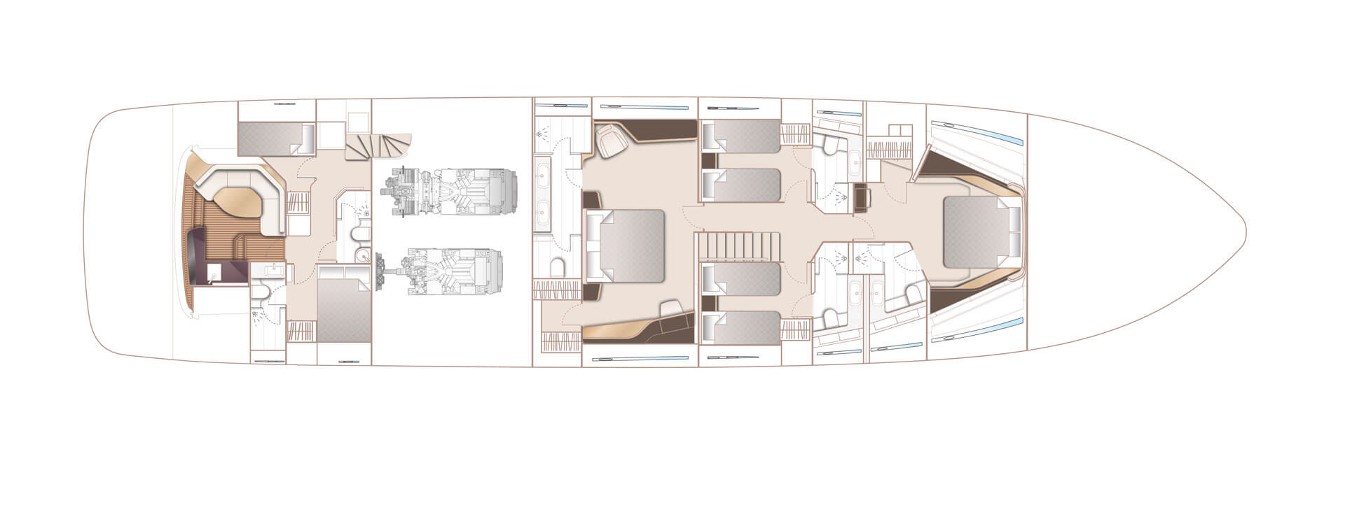 Die X95 zeichnet sich durch wunderschön modellierte Oberflächen und lange, fließende Linien aus und definiert so eine auffallende Designsprache für diese neue Klasse. Sowohl die Flybridge als auch das Hauptdeck erstrecken sich über fast die gesamte Länge der Yacht, wodurch flexible, großzügige Räumlichkeiten entstehen, die eine Ausrichtung jeder Ihrer Fahrten ganz nach den Vorlieben Ihrer Gäste ermöglichen. Die Kraftstoffkapazität von 13.818 Litern stattet die X95 mit der notwendigen Reichweite für lange, abenteuerliche Seereisen aus.Beim Betreten des Salons auf dem Hauptdeck eröffnet sich Ihnen ein Raumangebot, das einer Megayacht in nichts nachsteht - die Sichtlinie zieht sich geradeaus bis durch das Vorderfenster zum Horizont. Eine innenliegende Treppe führt Sie hinauf auf das Oberdeck, wo ein weiteres, einmaliges Erlebnis auf Sie wartet: eine vollständig geschlossene, klimatisierte Sky Lounge.Im Unterdeck erstreckt sich die Eignerkabine mit eigenem Bad über die volle Breite der Yacht, und im Bug befindet sich eine weitere Kabine mit begehbarem Kleiderschrank und eigenem Badezimmer. Die zusätzlichen Gästekabinen an Backbord und Steuerbord können individuell mit zwei Einzelbetten oder einem Doppelbett konfiguriert werden, und ein großzügiger Crewbereich ergänzt das exzellente Unterkunftsangebot dieser Yacht.