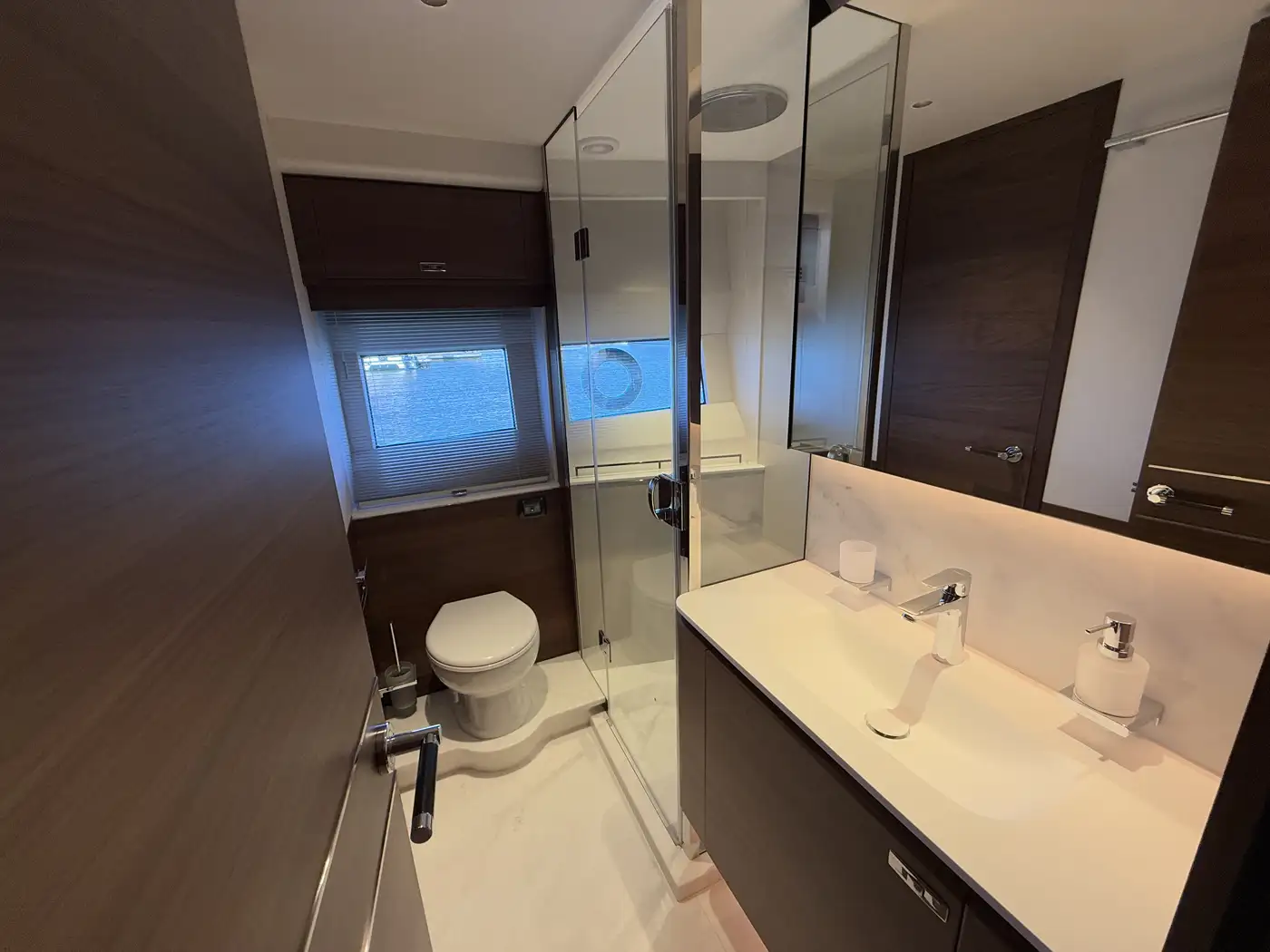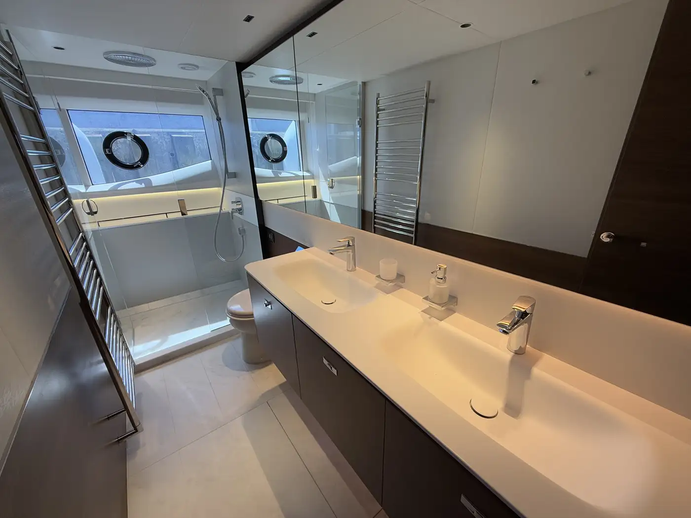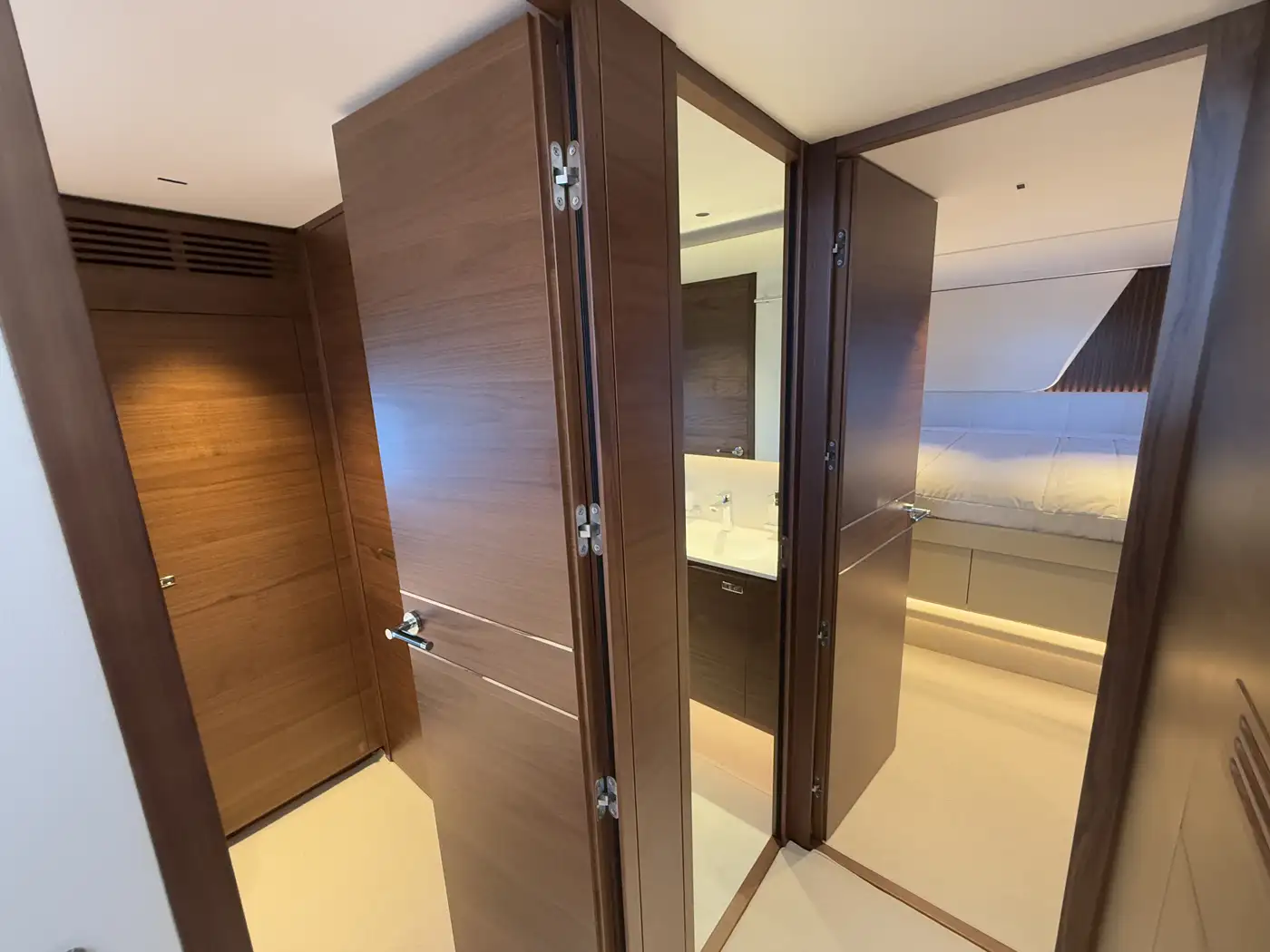Die Princess Y72 steht ab sofort zum Verkauf. Sie wurde nach den höchsten Standards im Bereich Komfort, Design und Verarbeitungsqualität gefertigt und bietet ihrem neuen Eigner alles, was man sich von einer Princess Yacht erwartet. Bis zu 8 Gäste können den Luxus einer eigenen Kabine mit jeweils eigenem Badezimmer auskosten. Der Eigner geht vom Salon aus über eine eigene private Treppe in seinen Bereich. Er genießt die volle Breite des Schiffes, die seine Kabine nutzt. Für Crew oder Tagesgäste gibt es noch eine Kabine im hinteren Teil des Schiffes.