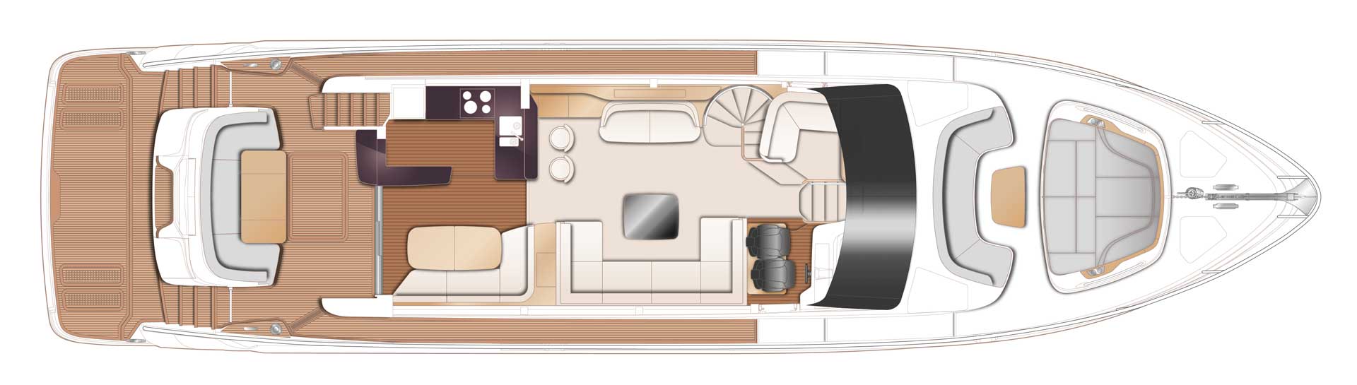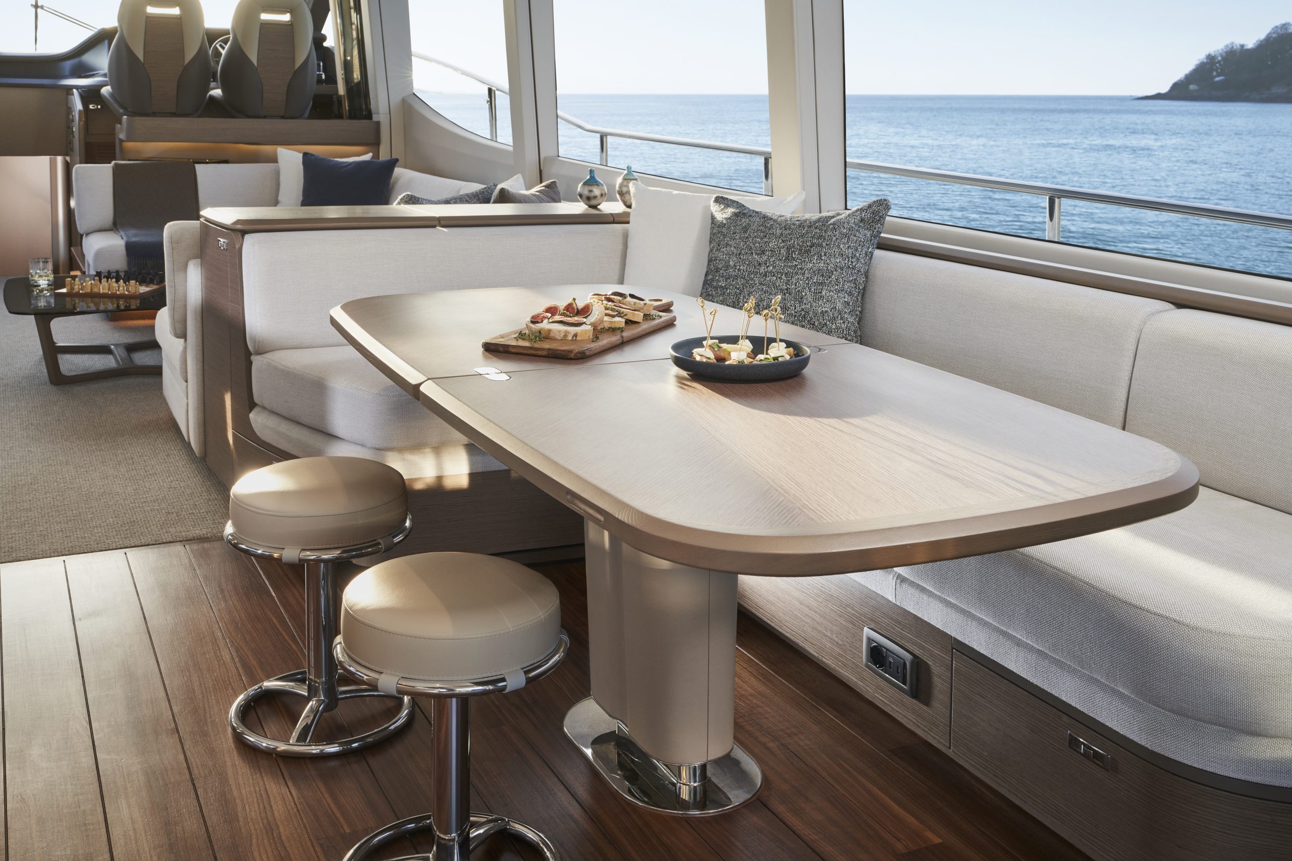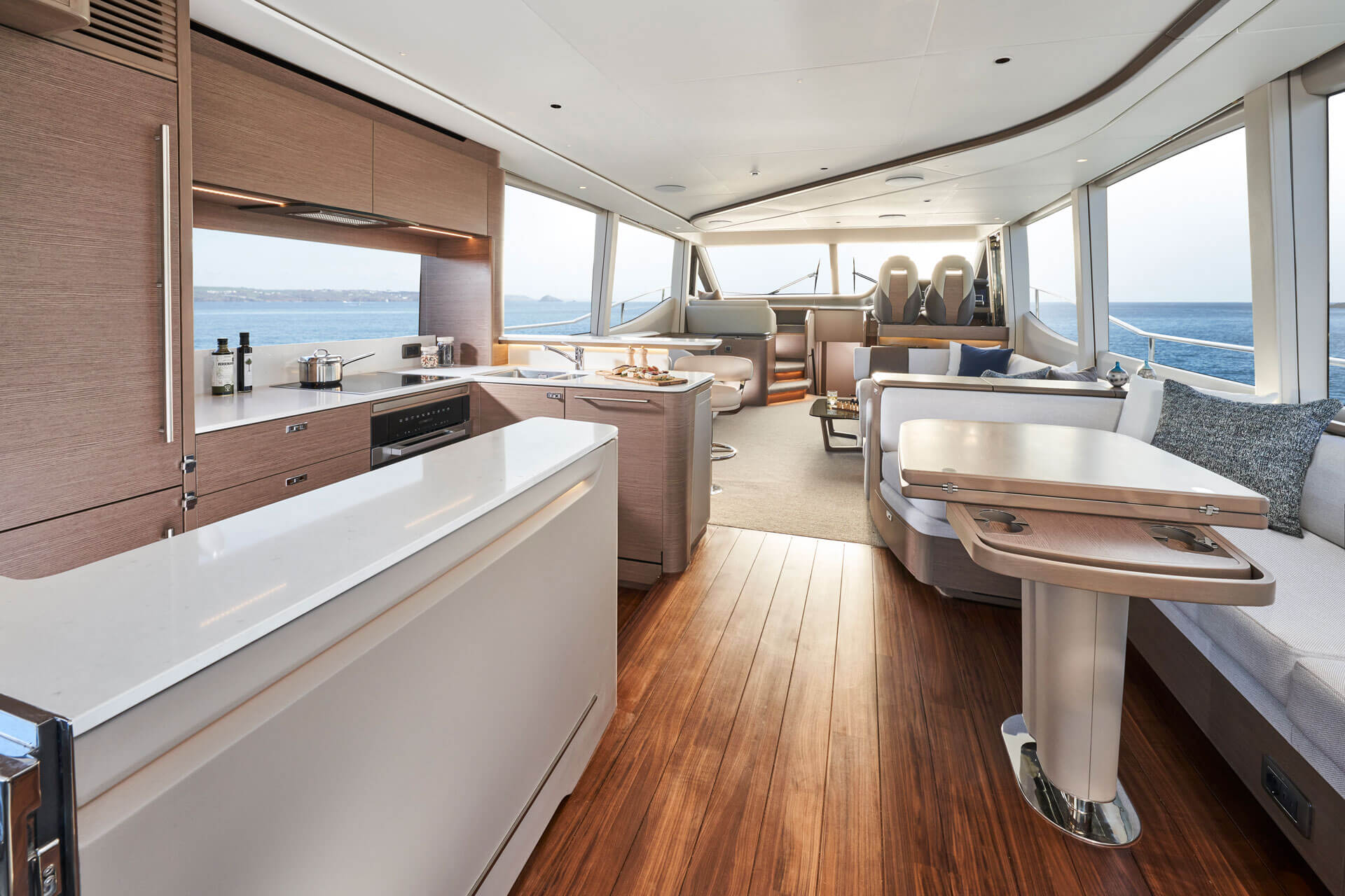 Das neueste Modell der Y72, die nach den höchsten Standards gefertigt wurde und vom Design vergleichbar mit den größeren Yachten der Y Klasse ist.Das Aufteilung im Salon ist gelungen, denn das Ambiente einer Bar und einer offenen Küchenzeile, wird durch das Multizonen Audio-System der Firma Naim© abgerundet.