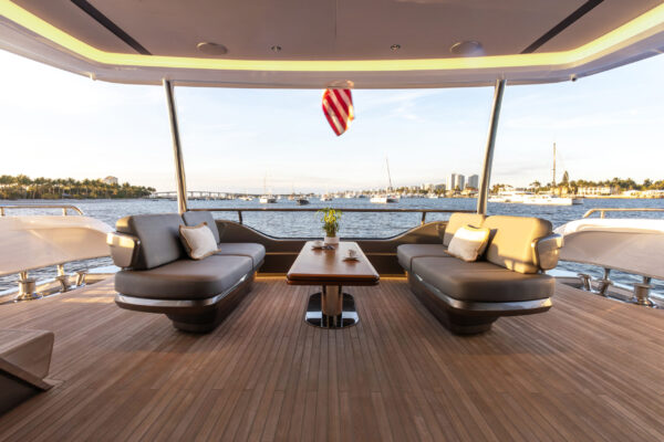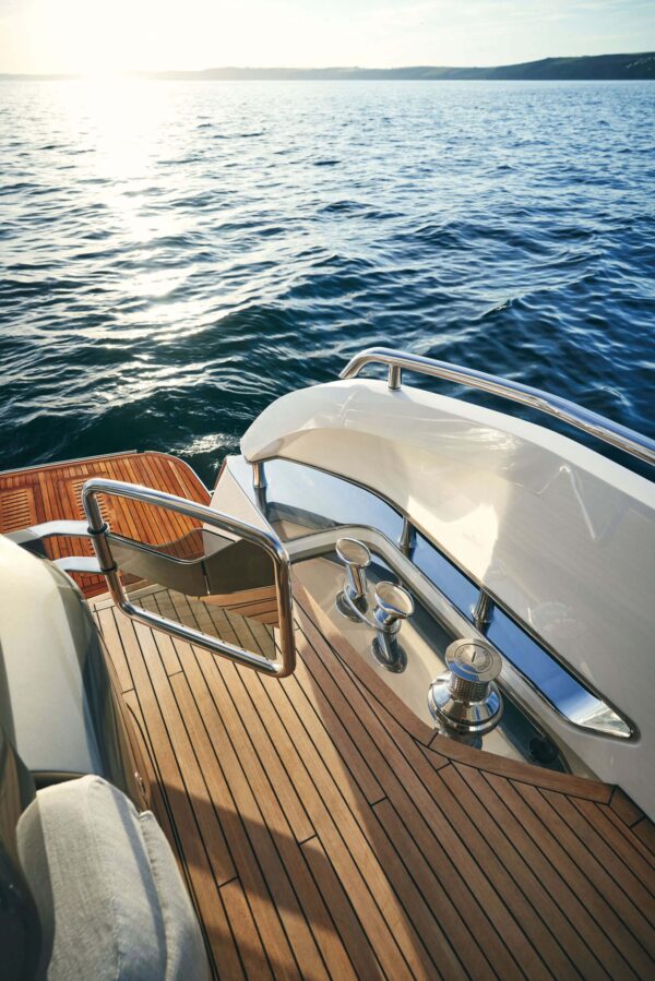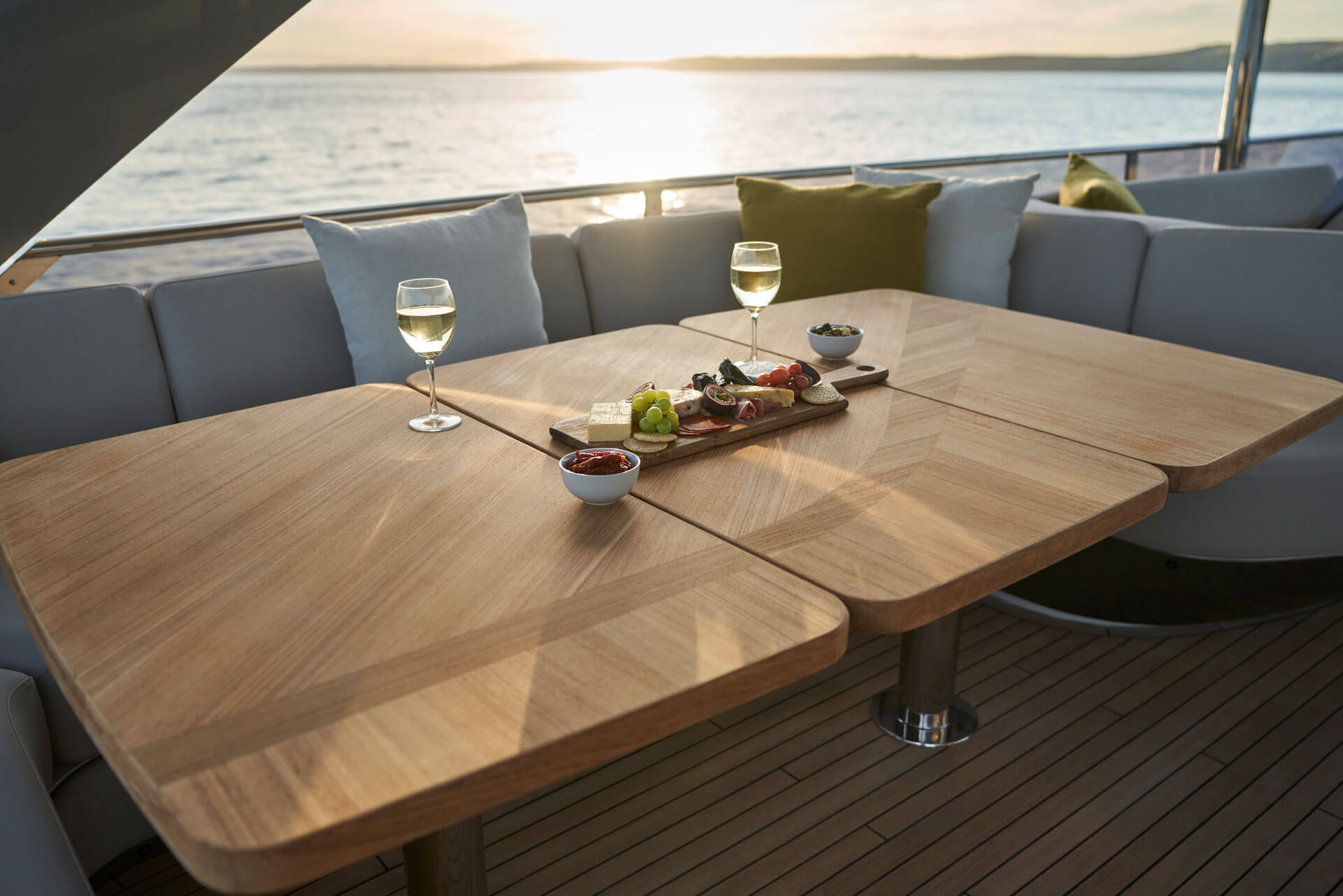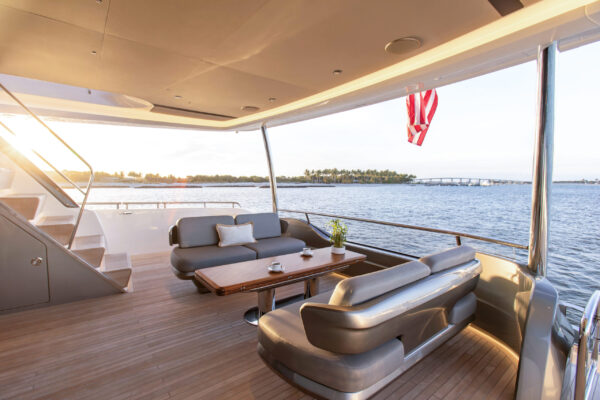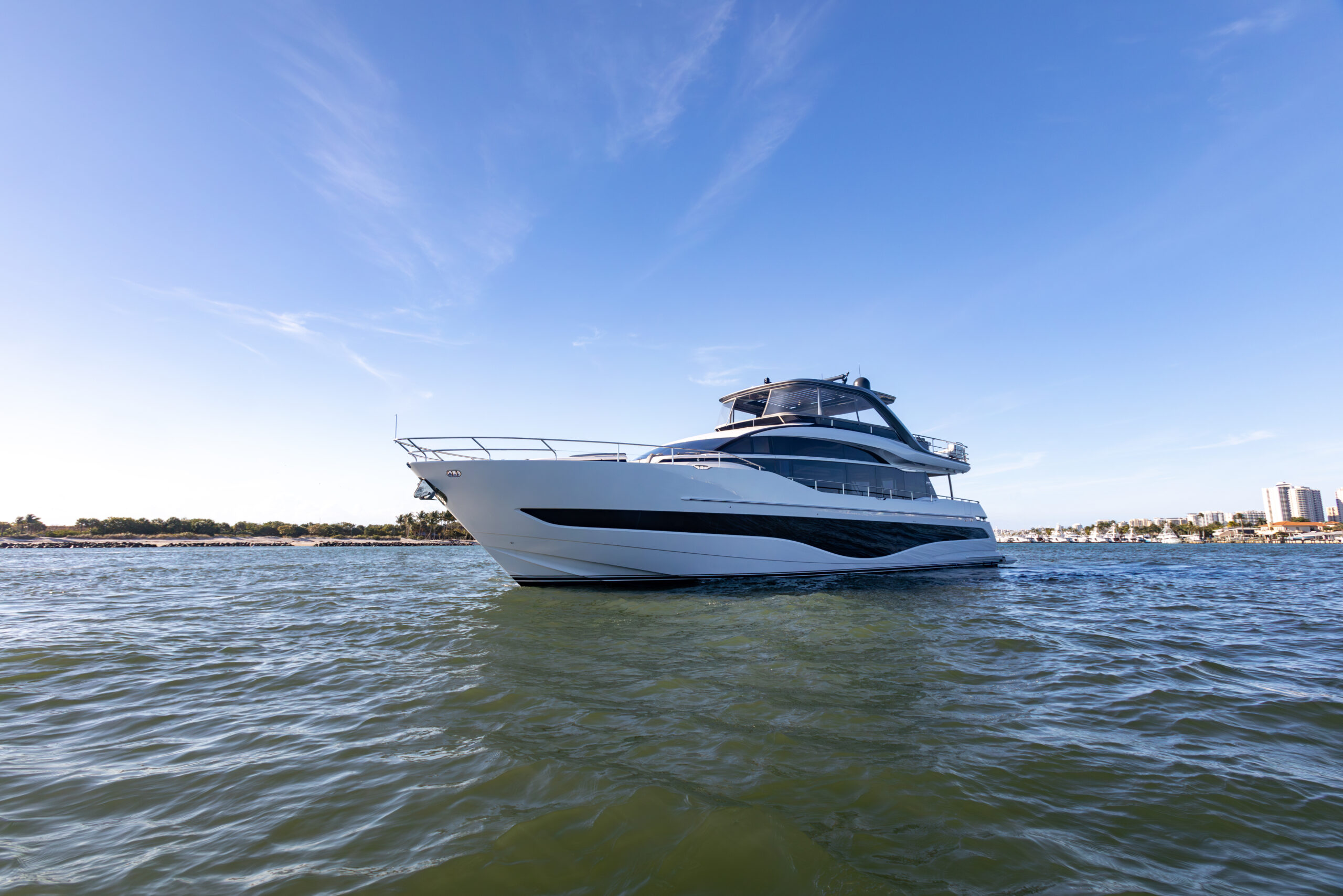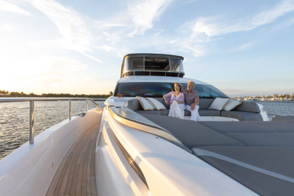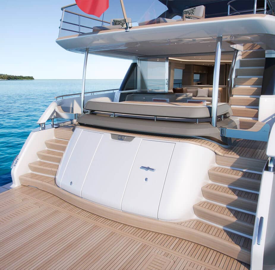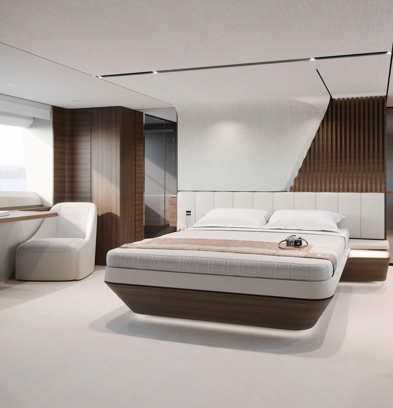 Die brandneue Y85 ist ein Triumph modernen Designs. Das elegant geschwungene Profil verbirgt im Inneren eine Zufluchtsstätte, die die Benchmark für modernen Lebensstil neu definiert. Mit einem großen Essbereich, einer gut ausgestatteten Bar sowie einem großzügigen Sonnenbereich achtern lädt die Flybridge zu geselligen Runden im Freien ein, denen man schwer widerstehen kann. Ohne sich umzudrehen schneidet diese Yacht dank ihrer beiden MAN V12 Motoren mit einer Spitzengeschwindigkeit von 33 Knoten an ihren Zeitgenossen vorbei durch das Wasser. Das weitläufige, einstöckige Hauptdeck bietet mit flexiblem Kombüsen-Arrangement ausreichend Platz zur Unterhaltung. Drei separate Sitzbereiche sorgen für größtmögliche Privatsphäre der Gäste, und die Crew kann sich diskret durch die Yacht bewegen. Unter Deck finden bis zu acht Gäste in vier wundervoll eingerichteten Kabinen mit eigenem Bad Platz. Mitschiffs erstreckt sich die Eignerkabine über die volle Breite der Yacht - ein Meisterwerk raumgreifenden Designs. Bugwärts befindet sich die VIP-Kabine mit eigenem Bad, großem Doppelbett und begehbarem Kleiderschrank. Darüber hinaus vervollständigen eine Doppelkabine und eine Kabine mit zwei Einzelbetten (zu einem Doppelbett umwandelbar) die großzügigen Schlafbereiche dieser Yacht. Es ist nicht zu übersehen, dass die brandneue Y85 unverkennbar eine Princess ist.